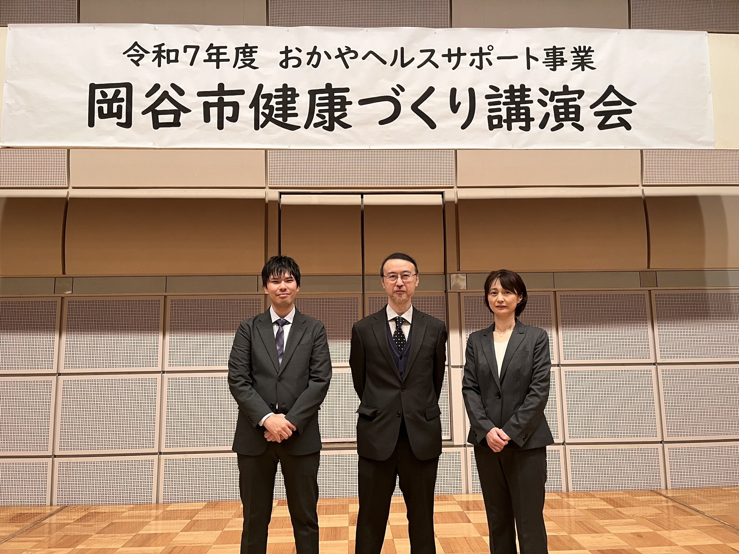 2025年11月1日に、カノラホール小ホールにて、おかやヘルスサポート事業が開催されました。今回は第4弾「心不全の病態と治療」というテーマで、循環器内科の翠川副院長、栄養科の宮下管理栄養士、当科の唐澤理学療法士が講師を務めました。リハビリからは、運動時の負荷量の注意点などをお話し、実際の運動指導を行いました。多くの市民のみなさんにご来場いただきました。ありがとうございました。
