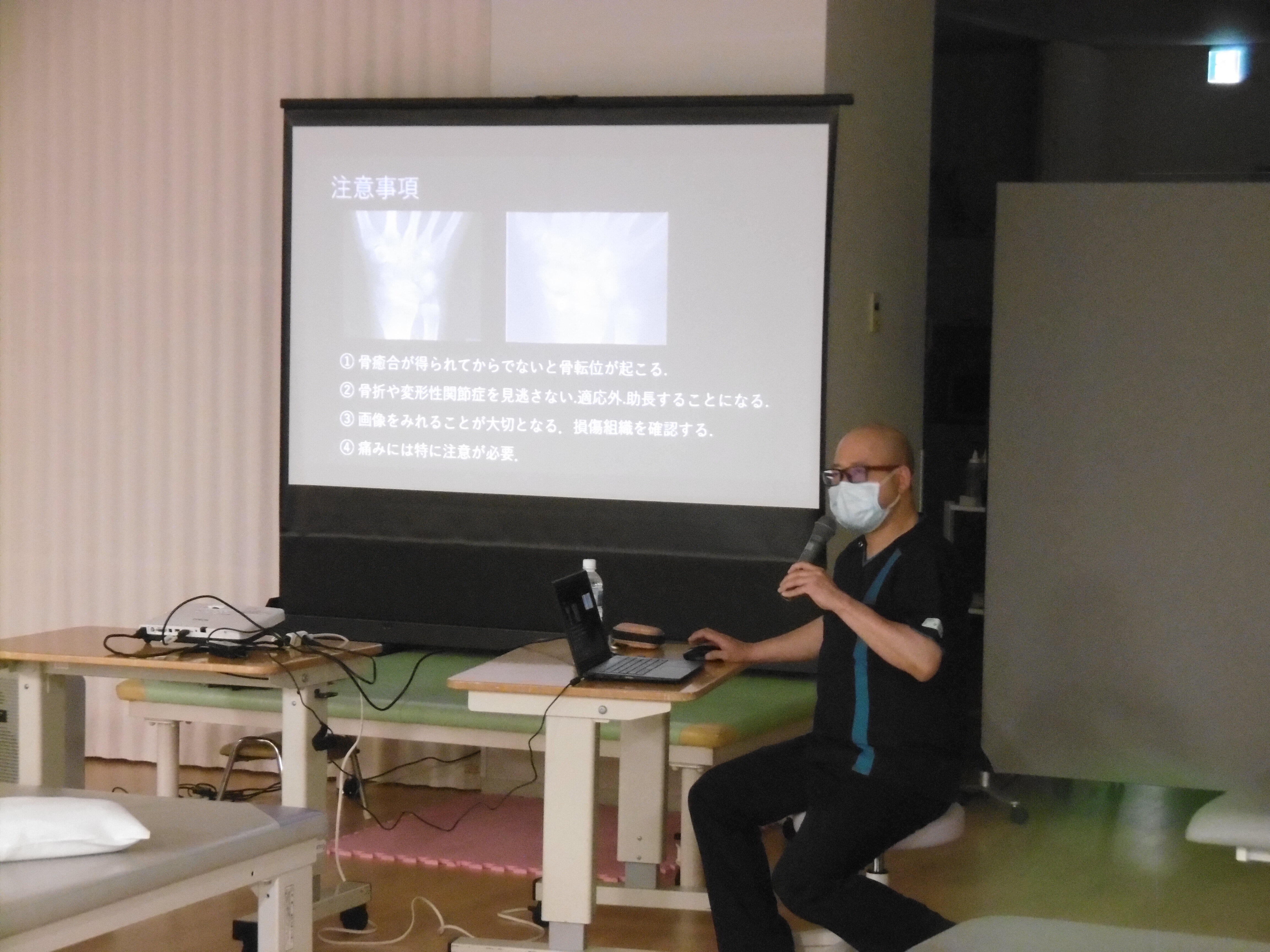 2025年9月11日に健康科学大学の高村浩司先生にお越しいただき、ご指導いただきました。日中は、難渋している患者様の治療指導をしていただき、業務後は「寝返り・起き上がり」をテーマに講義と実技指導をしていただきました。実技指導は明日から臨床に活かせる内容で、治療のアイディアを提示していただきました。今後も治療・介助スキルの向上に努めていきたいと思います。